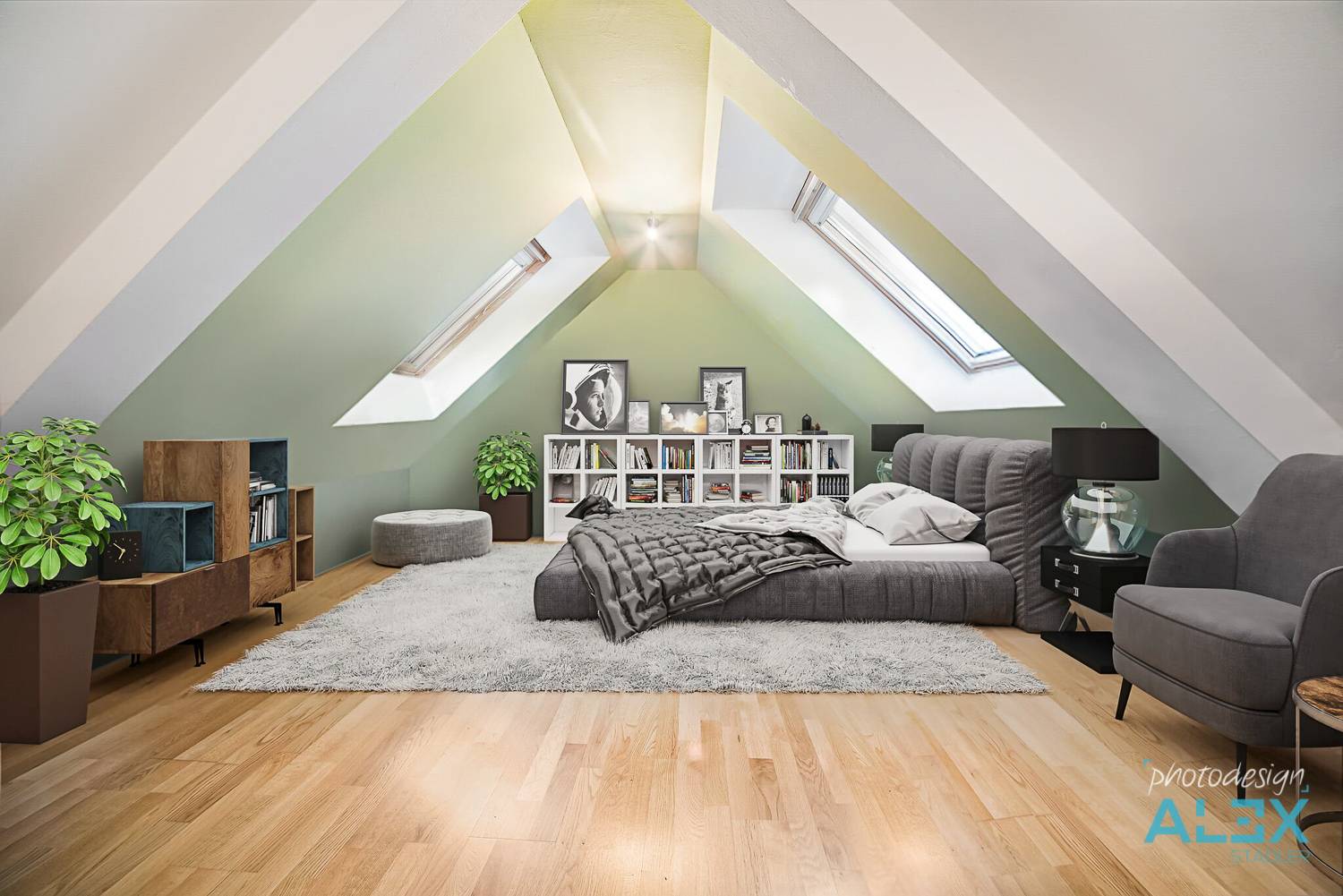 Nachher: die Galerie wurde mittels digitaler Möblierung zum Schlafzimmer umfunktioniert