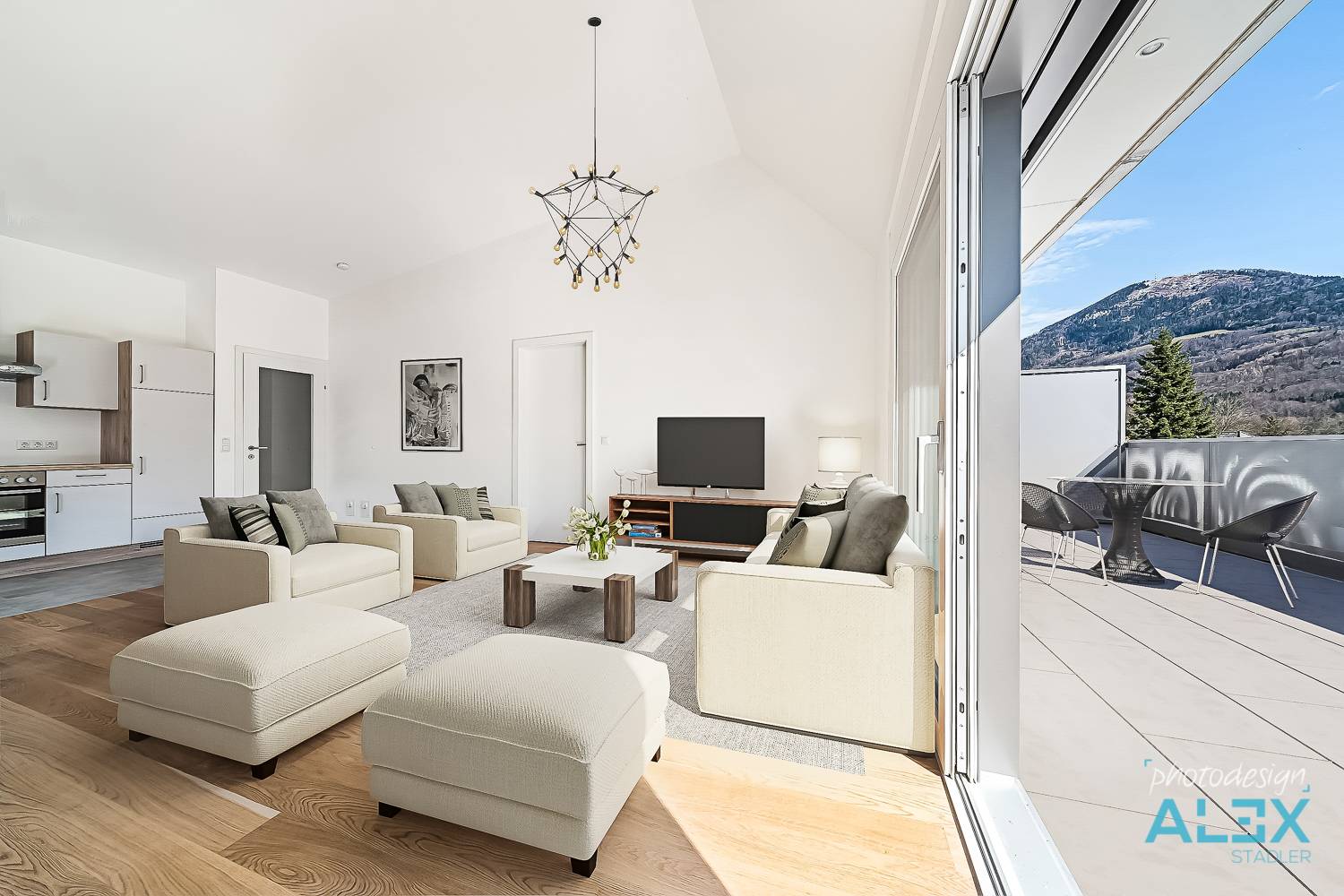 Hier sind ein paar Vorher / Nachher Vergleichsbilder zu sehen, welche Möglichkeiten und Ergebnisse sich durch die digitale Möblierung / das Digital Home Staging von Immobilienfotos erzielen lassen.